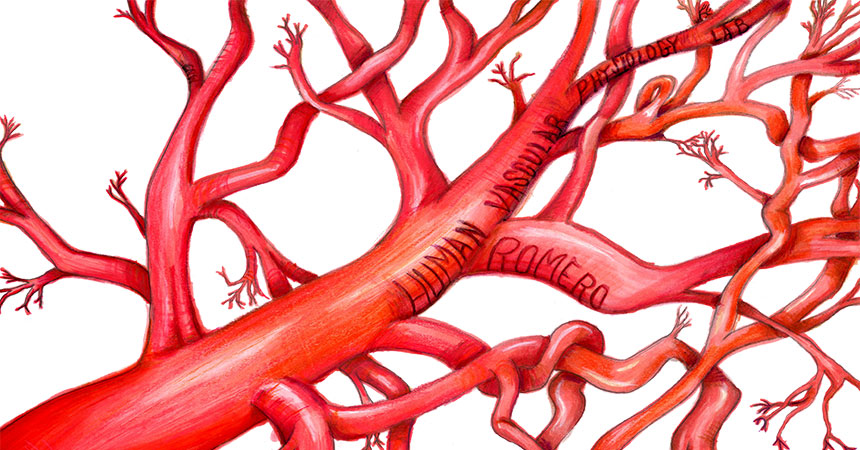 Illustration of blood vessels with the words "Human Vascular Physiology Lab" and "Romero" handwritten in black