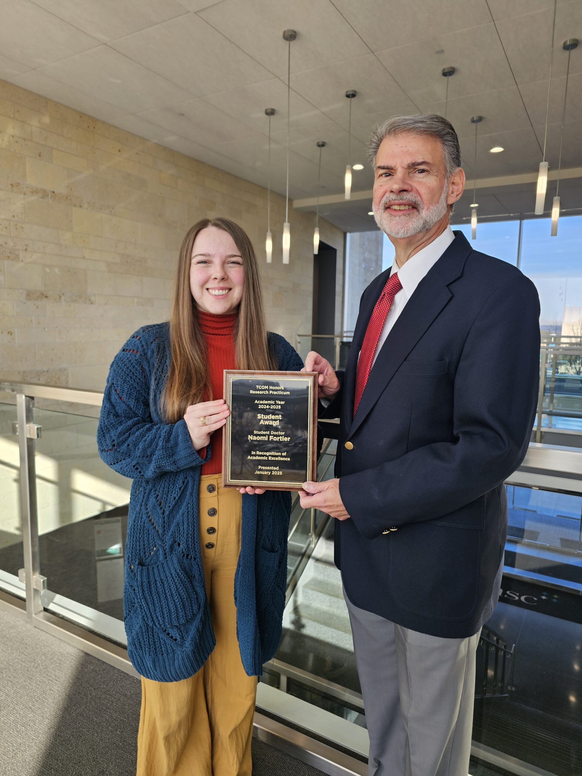 Each year, after completing the course, a student is chosen to receive the TCOM Honors Research Practicum Award, based on performance throughout the course.